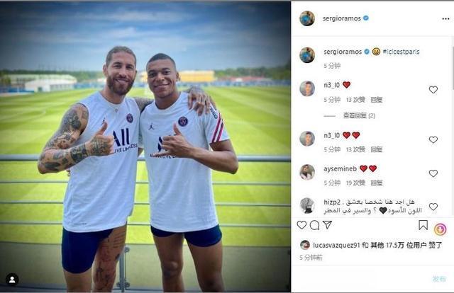 24直播网讯 刚刚来巴黎的拉莫斯就又交了新的朋友,拉莫斯最近心情不错,在Instagram上晒出自己与姆巴佩在训练场上的合照。