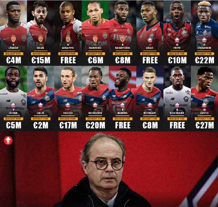坎波斯的理念是什么?就是发掘年轻球员,此前有报道表示,坎波斯每年要飞两百多次,几乎一大半的时间都在飞来飞去考察球员中。而他也帮助摩纳哥和里尔发掘了诸多球员,同时帮助球队赚的盆满钵满。如图,上图的球员当时都是坎波斯签下的,勒马尔、法比尼奥、巴卡约科、姆巴佩、贝尔纳多都是坎波斯签下的。而这些球员,买来的时候一共花费了3300万欧元。而卖出的时候,勒马尔转会费高达7200万欧元,姆巴佩是1.8亿欧元,贝尔纳多是5000万欧元,法比尼奥是5000万欧元,巴卡约科5000万欧元。在摩纳哥3年期间,他直接通过买卖球员帮助球队赚取了3.69亿欧元,当然这还不算他高价卖出了法尔考、J罗、孔多比亚等人的费用,因为这些球员并非他在任时期签下的。