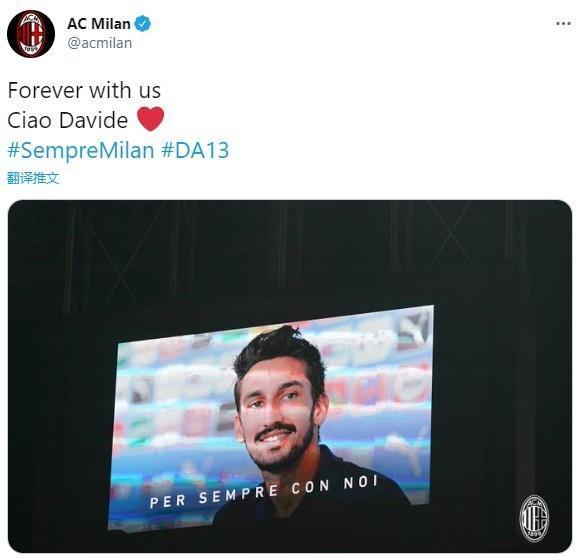 在比赛结束后,米兰官方推特分享了现场悼念阿斯托里的照片,配文写道:“你永远和我们在一起。再见,阿斯托里。”