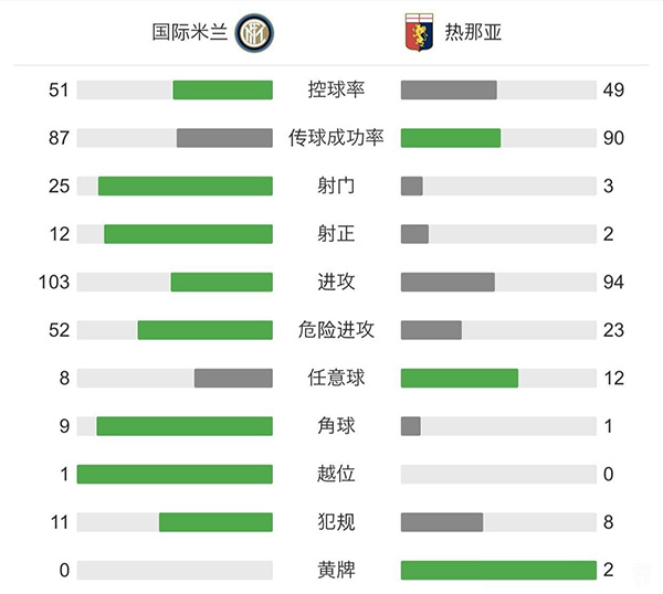 终场哨响,全场比赛结束,国际米兰3比0完胜热那亚。
