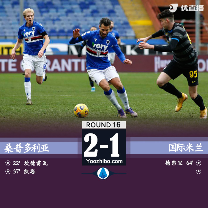 38分钟桑普扩大领先优势,达姆斯高中场精彩转身摆脱后又人球分过过掉巴斯托尼,随后他禁区内横敲凯塔跟进推射得手,2-0,桑普领先!