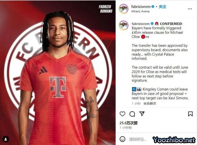 拜仁4500万英镑解约金触发 罗马诺带来最新消息