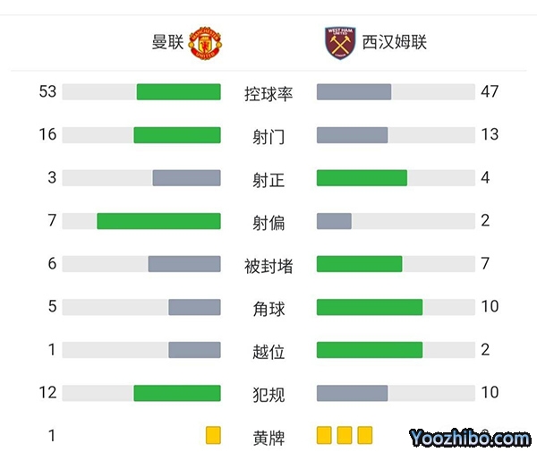 全场比赛结束,最终曼联1-0击败西汉姆联队,超越切尔西升至积分榜第五。