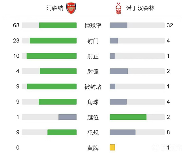 全场比赛结束,阿森纳5-0诺丁汉森林!