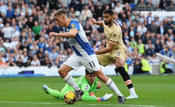 比赛第47分钟,加拉格尔助攻哈弗茨完成头球破门,切尔西追回一球,但是无法改变败局;比赛第90+1分钟,科瓦契奇也送大礼,传球失误遭到对方反击,恩西索远射被扑,二次进攻劲射还是被扑,最后格罗斯跟进补射破门,布莱顿疯狂4-1大胜切尔西。