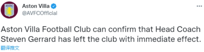 你的位置: 24直播网 足球直播 英超 官方:维拉主帅杰拉德战绩不佳下课