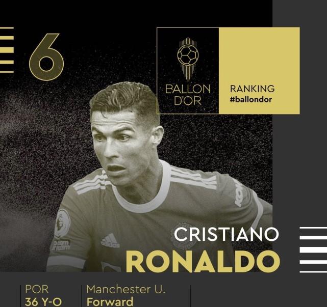 36岁C罗仅获178分排第6:近10年首次跌出前3!金球数5-7被梅西甩开