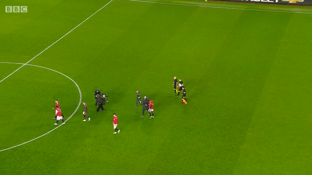 两人在中圈附近相视而笑,然后一起边走边聊,走向老特拉福德的球员通道。有趣的是,索帅此时就走在两人前面。