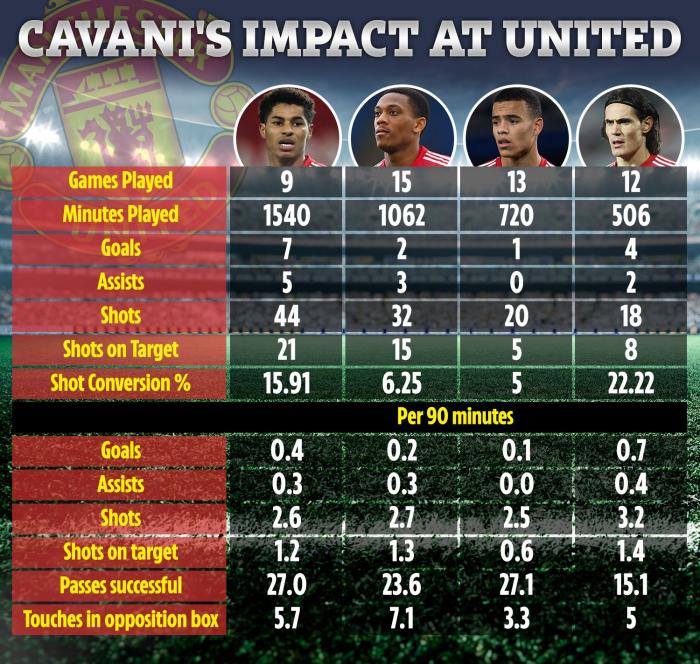 数据也证实,卡瓦尼是曼联锋线上最有效率的一人,比拉什福德和马夏尔更应获得首发中锋位置。