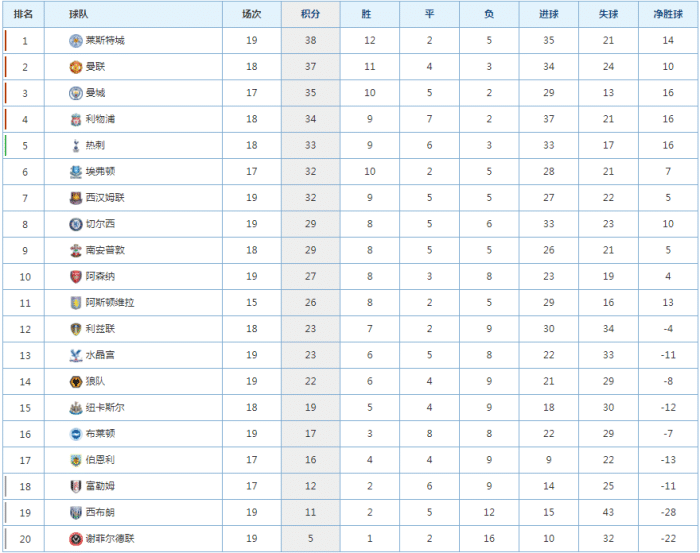 来源:24直播网01-20 21:0024直播网1月20日讯 本赛季英超赛事已经进行了18轮比赛了,而本赛季的英超形势依然不够明朗。在过往几个赛季,在这个时间段,英超争冠形势已经非常明朗了。前几个赛季,在这个时间段曼城和利物浦都领先第二集团十分左右了。而目前,英超第一到第九的球队,只不过8分的差距,可以说这九支球队在积分方面都有争冠的可能性,不得不说本赛季的英超竞争真的非常激烈。