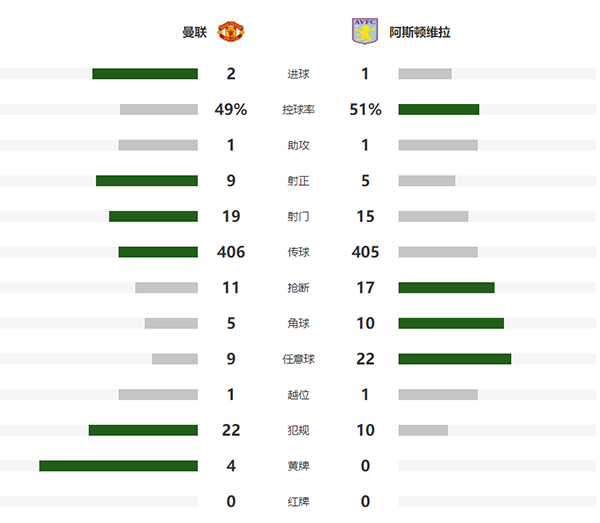 第39分钟,拉什福德巧妙脚后跟做球,万-比萨卡右路下底传中,马夏尔包抄头球攻门破网,曼联1-0阿斯顿维拉!
