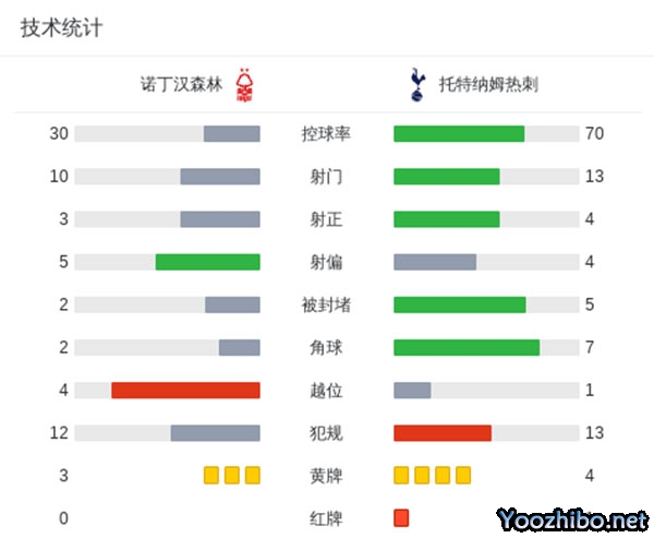 热刺0-1森林2连败仍居第11 森林英超4连胜先赛升第3